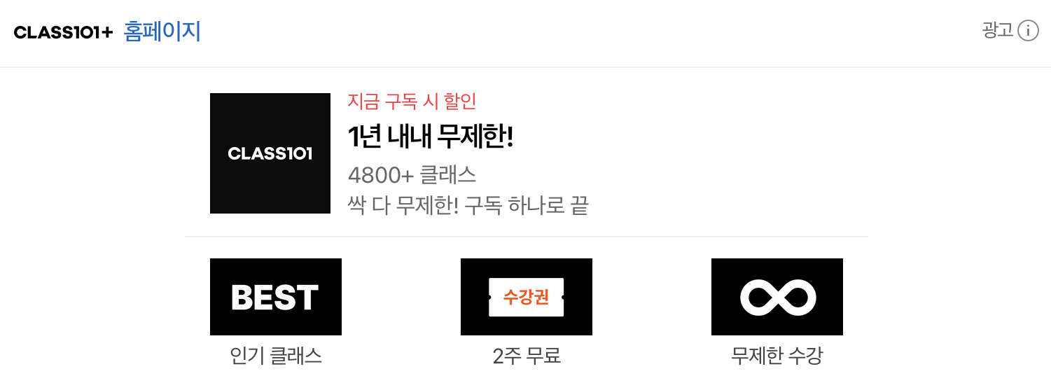 내가 클래스101 구독한 시점은 올해 3월이다. 지금도 그렇지만 수시로 할인을 많이하기 때문에 특정 할인 기간을 기다리지 않아도 될 것 같아서 바로 시작했다.